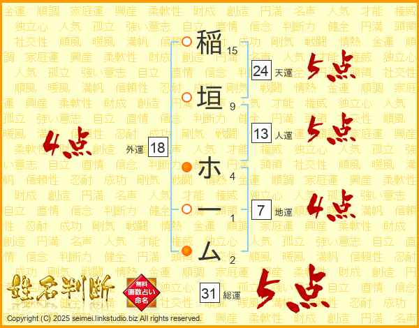 稲垣ホームさんの総運は31画の5点!