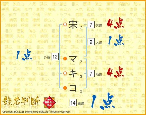 宋(7画) マ(2画)キ(3画)コ(2画)