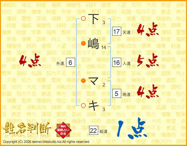 下嶋マキさんの天運は17画の4点!
