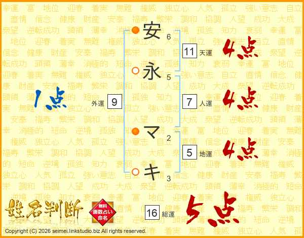 安永マキさんの天運は11画の4点!