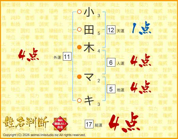 小田木マキさんの総運は17画の4点!