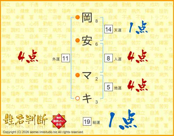 岡安マキさんの総運は19画の1点!