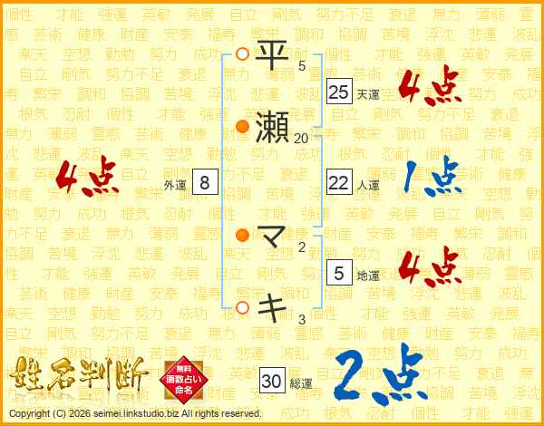 平瀬マキさんの総運は30画の2点!