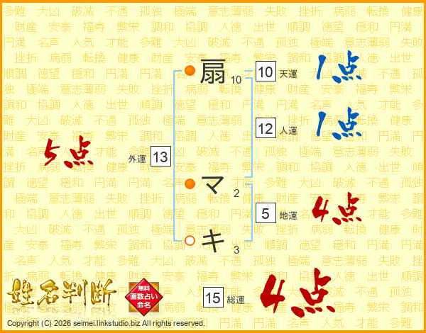 扇マキさんの総運は15画の4点!