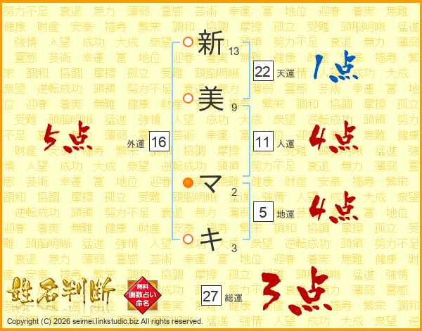 新美マキさんの総運は27画の3点!
