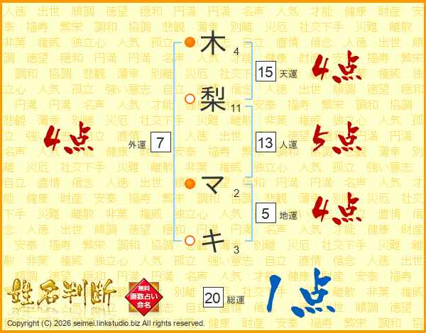 木梨マキさんの総運は20画の1点!