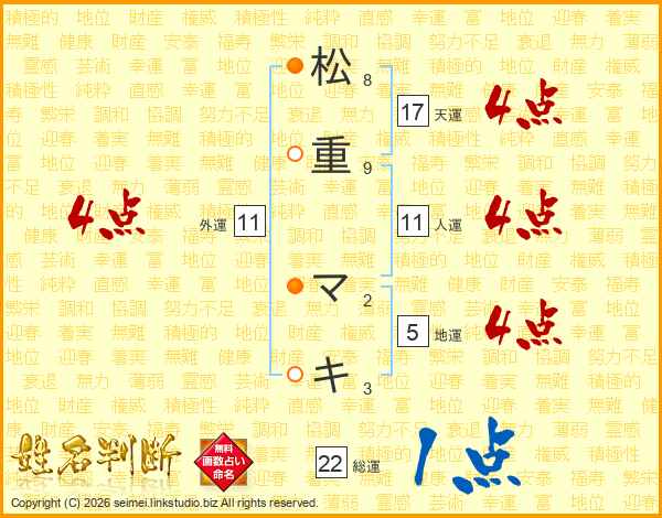 松重マキさんの総運は22画の1点!