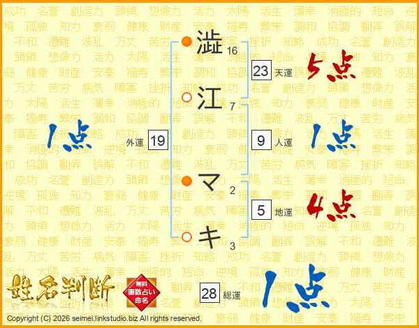 澁江マキさんの天運は23画の5点!