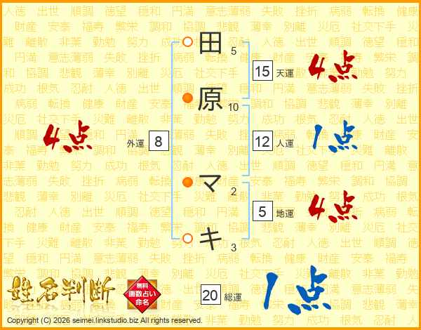 田原マキさんの総運は20画の1点!
