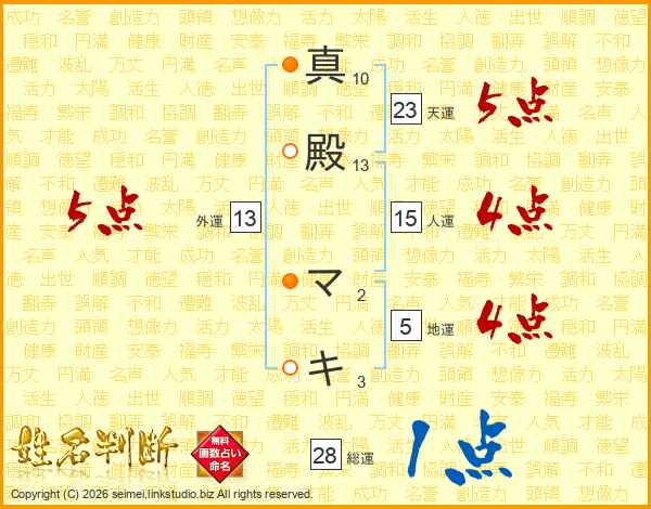 真殿マキさんの天運は23画の5点!