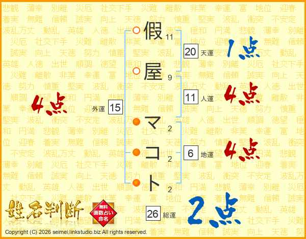 假屋マコトさんの総運は26画の2点!