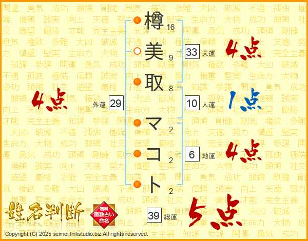 樽(16画)美(9画)取(8画) マ(2画)コ(2画)ト(2画)