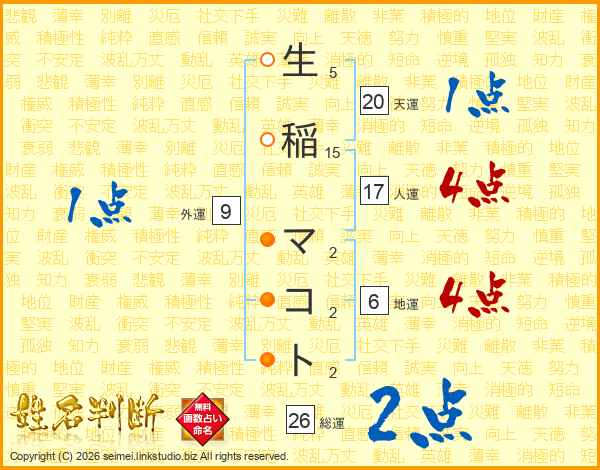 生稲マコトさんの総運は26画の2点!