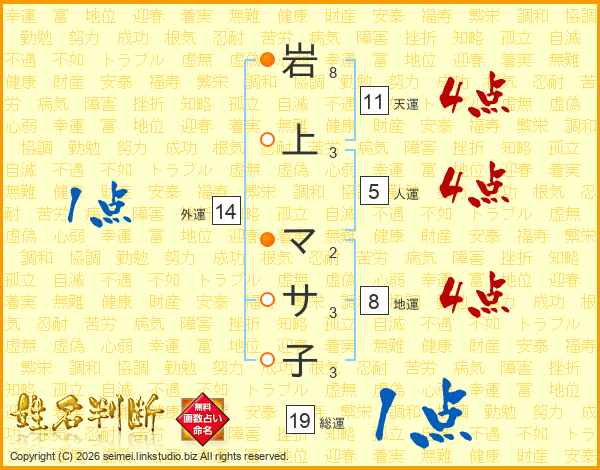 岩上マサ子さんの総運は19画の1点!