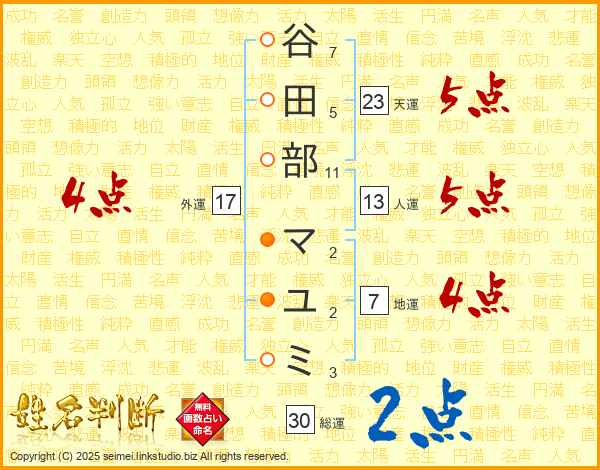 谷(7画)田(5画)部(11画) マ(2画)ユ(2画)ミ(3画)