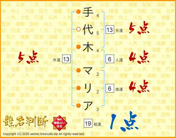 手代木マリアさんの天運は13画の5点!