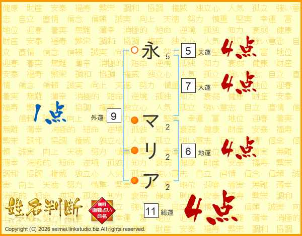 永マリアさんの総運は11画の4点!
