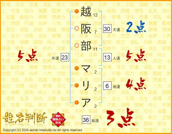 越阪部マリアさんの総運は36画の3点!