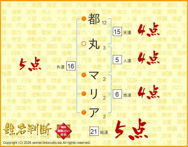 都丸マリアさんの総運は21画の5点!