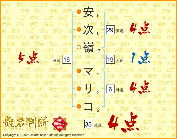 安次嶺マリコさんの総運は35画の4点!
