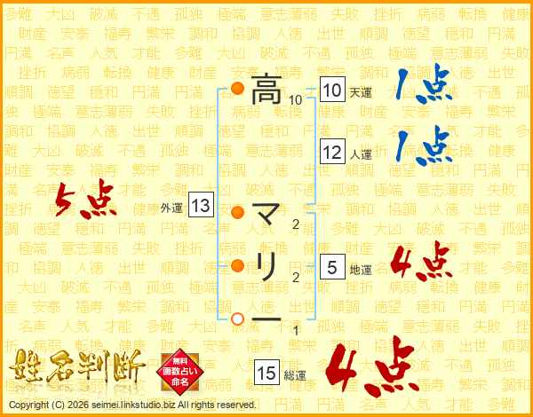 高マリーさんの総運は15画の4点!