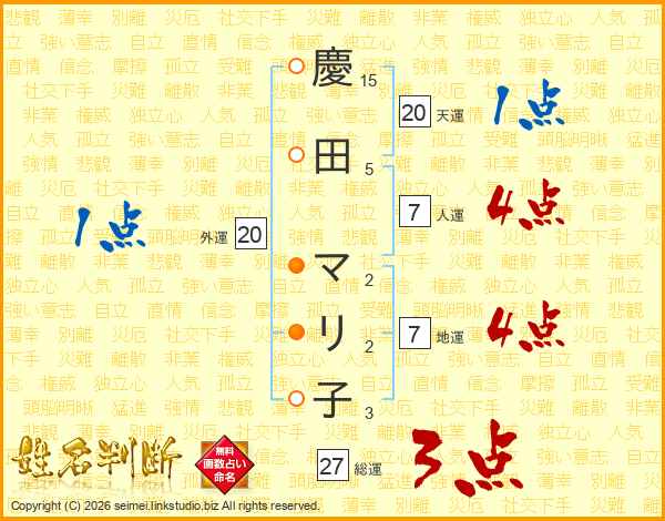 慶田マリ子さんの総運は27画の3点!