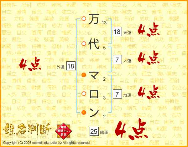 万代マロンさんの天運は18画の4点!
