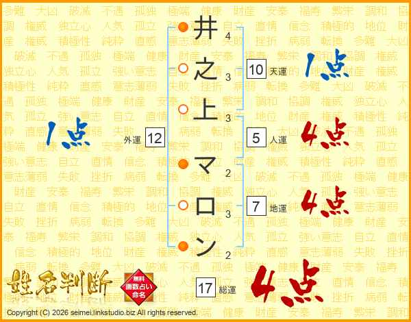 井(4画)之(3画)上(3画) マ(2画)ロ(3画)ン(2画)