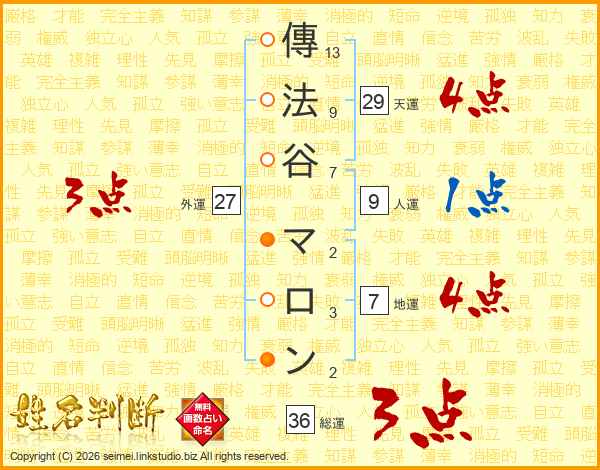 傳法谷マロンさんの天運は29画の4点!