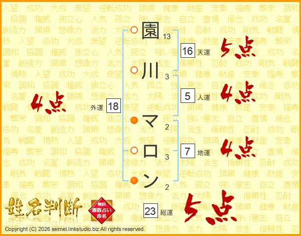 園川マロンさんの総運は23画の5点!