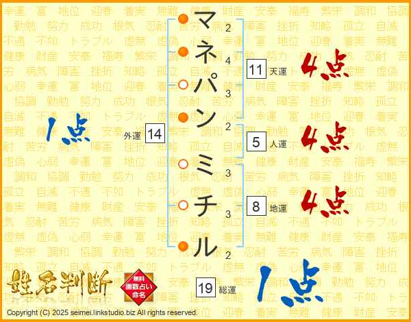 マネパンミチルさんの総運は19画の1点!
