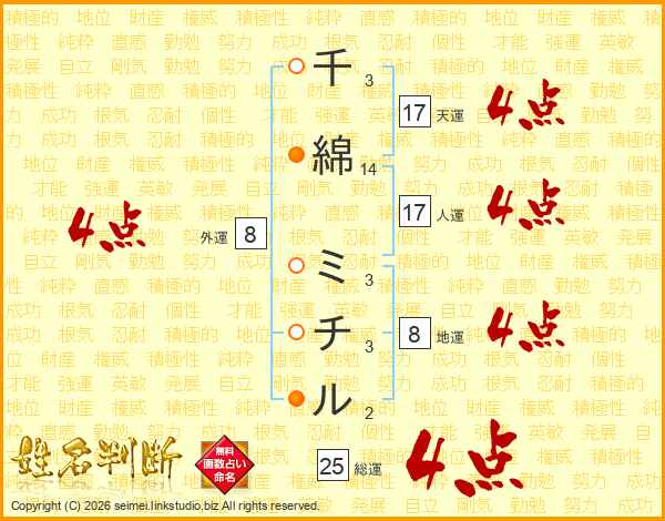 千綿ミチルさんの天運は17画の4点!