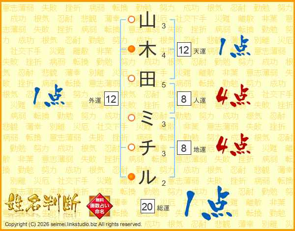 山木田ミチルさんの総運は20画の1点!