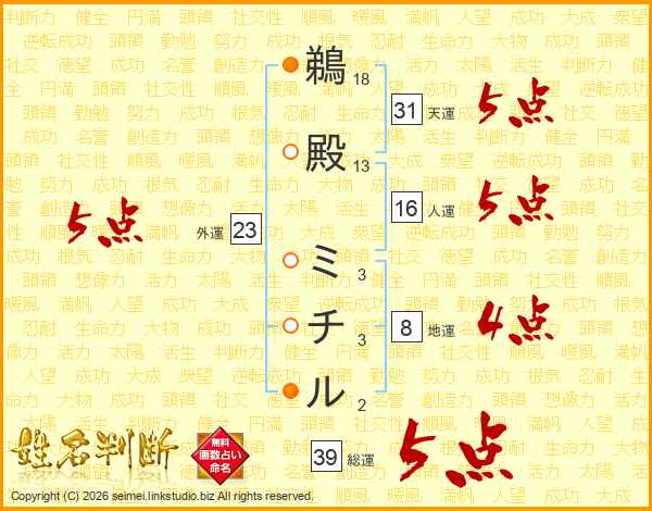 鵜殿ミチルさんの総運は39画の5点!