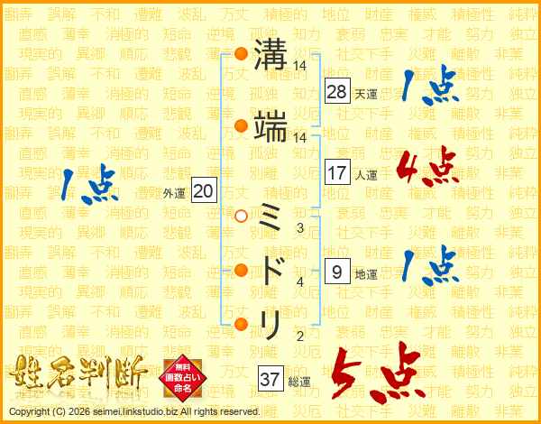 溝端ミドリさんの天運は28画の1点!