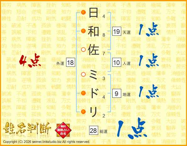 日和佐ミドリさんの総運は28画の1点!