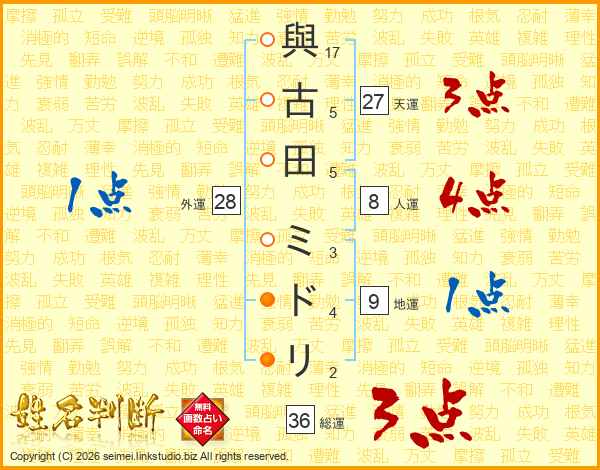 與古田ミドリさんの総運は36画の3点!