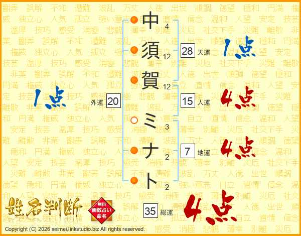 中須賀ミナトさんの総運は35画の4点!