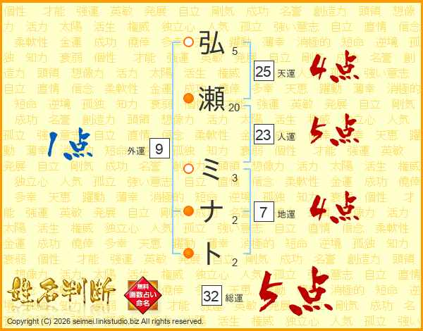 弘瀬ミナトさんの総運は32画の5点!
