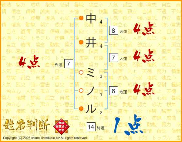 中井ミノルさんの総運は14画の1点!