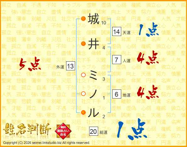 城井ミノルさんの総運は20画の1点!