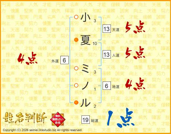 小夏ミノルさんの天運は13画の5点!