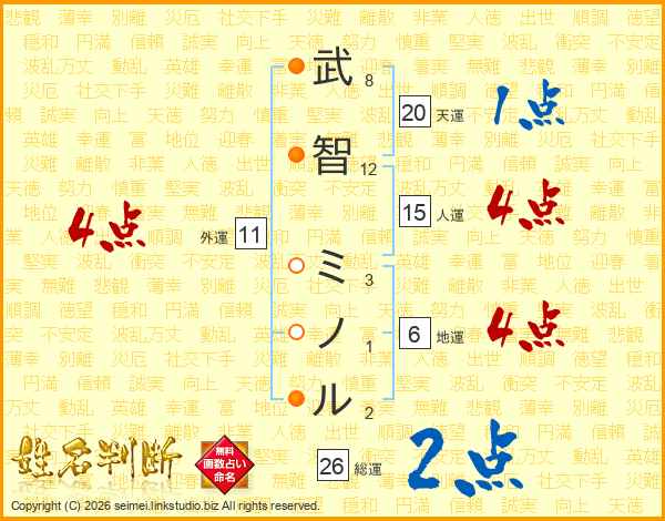 武智ミノルさんの総運は26画の2点!
