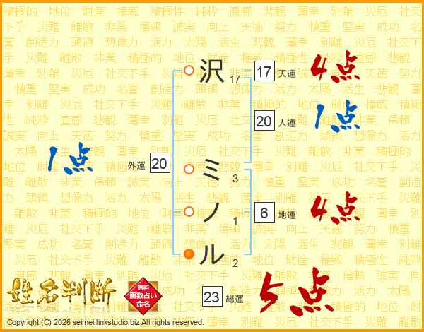 沢ミノルさんの総運は23画の5点!