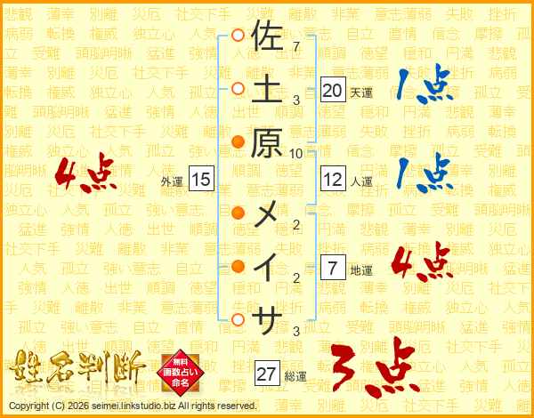 佐(7画)土(3画)原(10画) メ(2画)イ(2画)サ(3画)