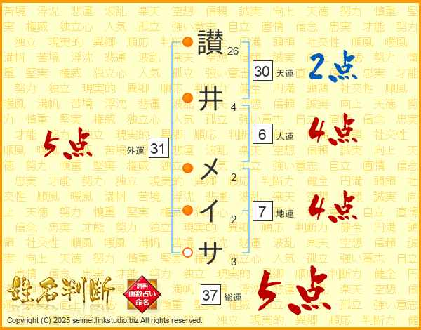 讃(26画)井(4画) メ(2画)イ(2画)サ(3画)