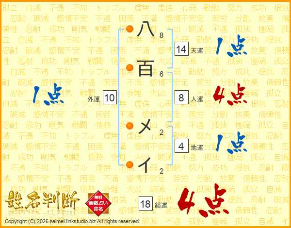 八百メイさんの天運は14画の1点!