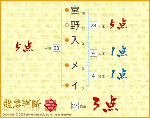 宮野入メイさんの外運は23画の5点!