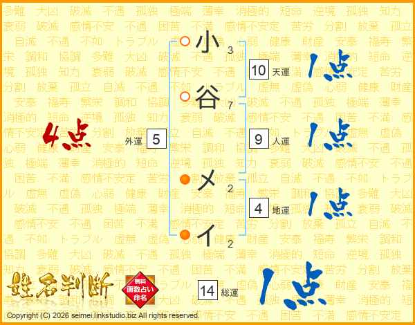小谷メイさんの総運は14画の1点!
