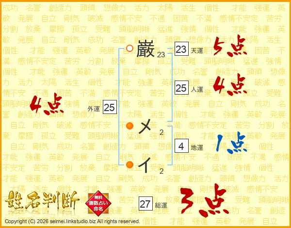 巌メイさんの総運は27画の3点!